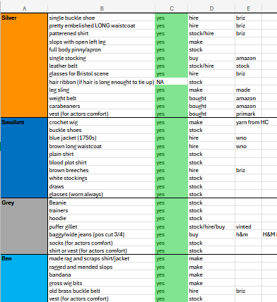 I have been responsible for making and managing costume bibles, handling the budgets, schedules and to-do lists for the costume department of productions. Keeping track of and supervising the making, sourcing and breakdown process. Keeping up with the relevant paperwork throughout the production process and get-out.