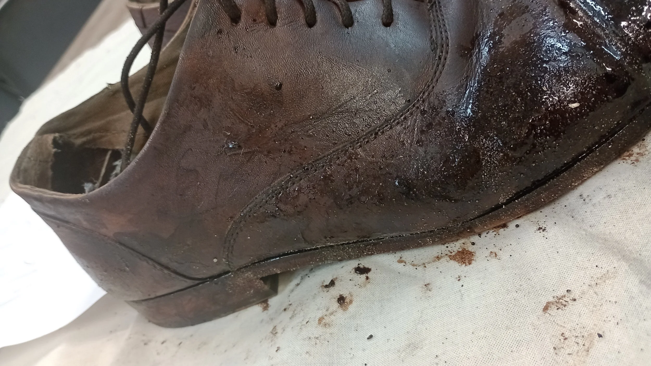 Polly’s trousers for The Sweet Science of Bruising; soot from assisting her brother coal mining, dirt and general wear from her working-class life.