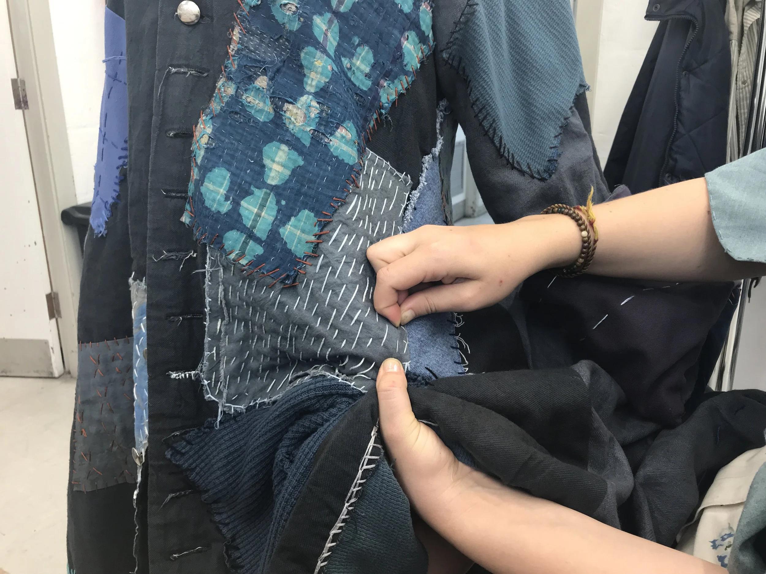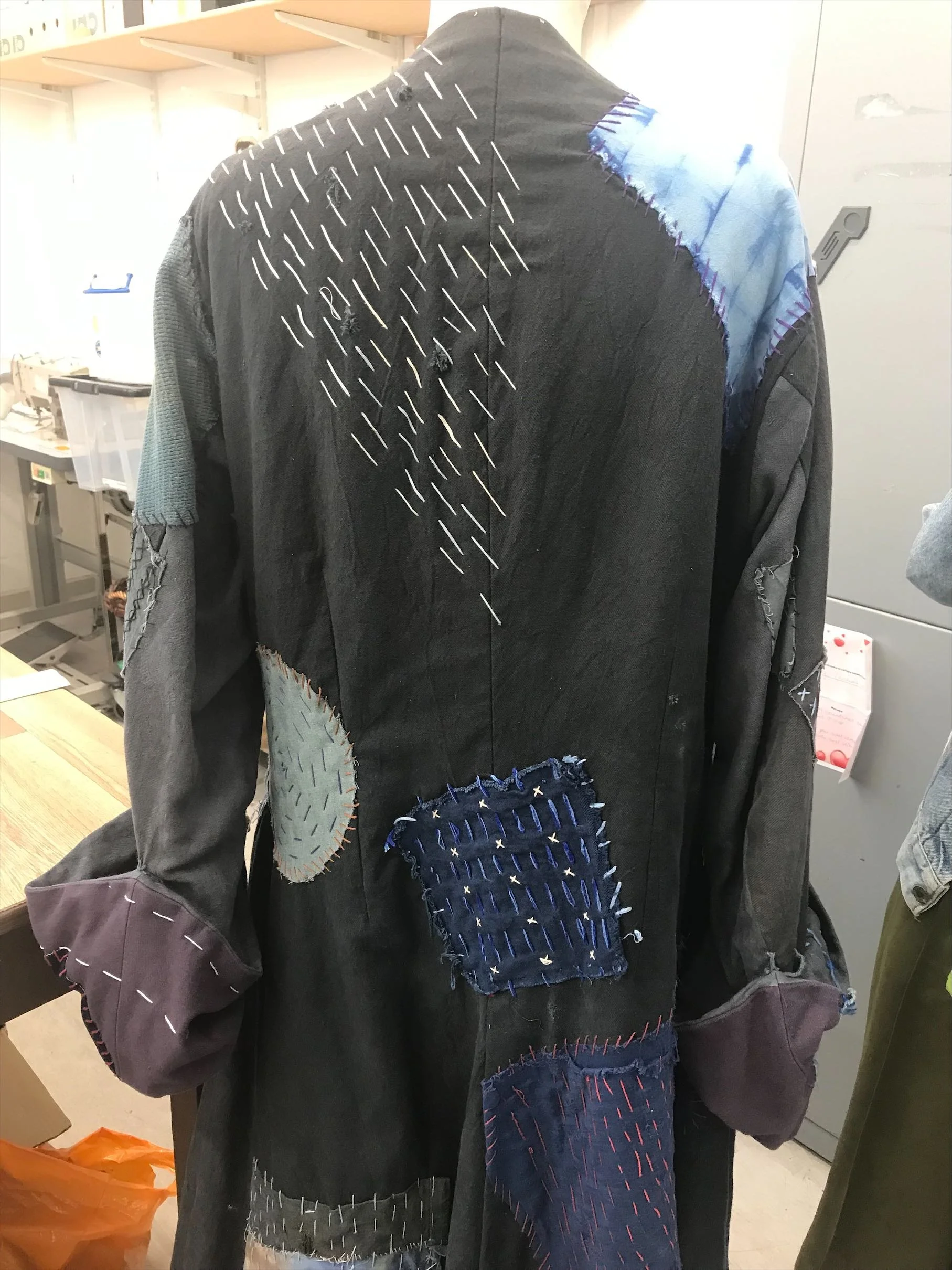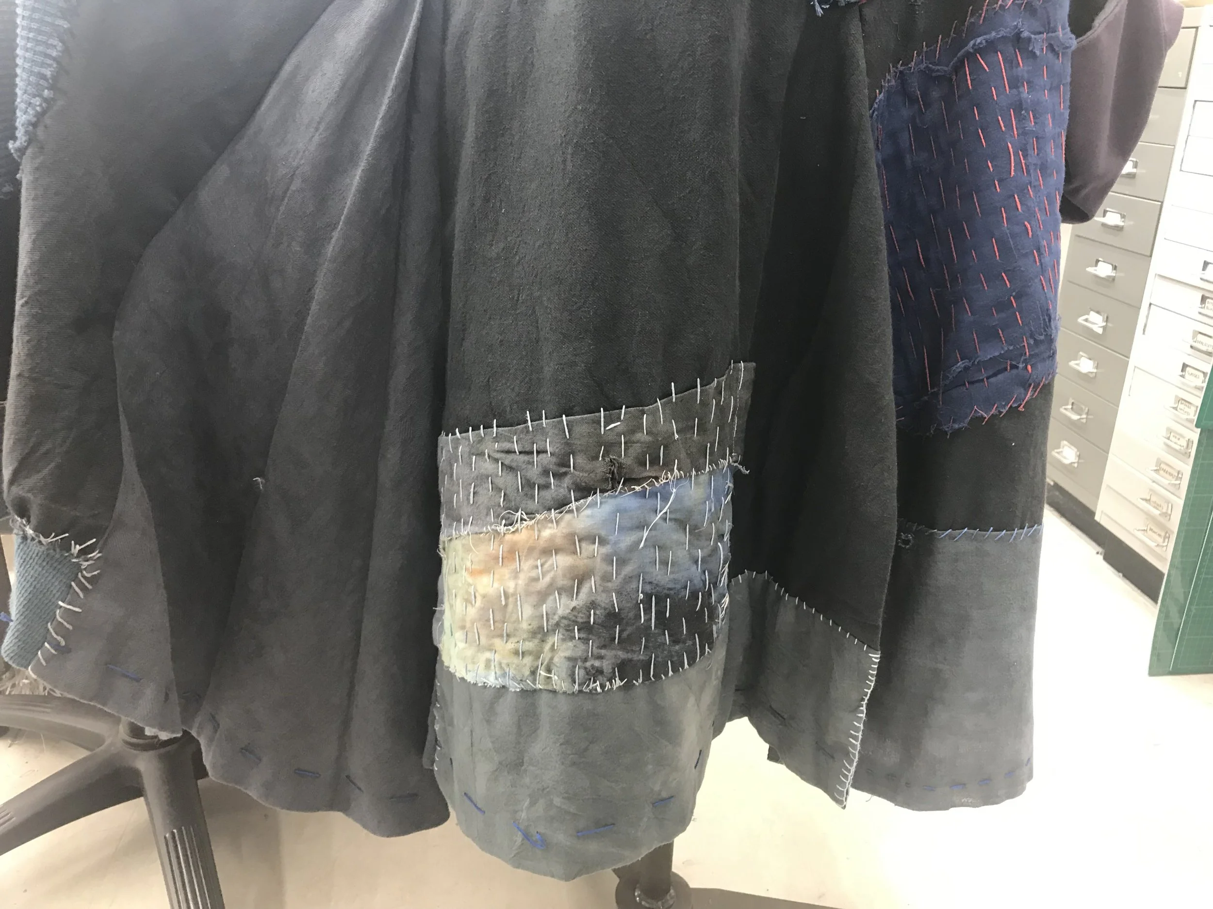 Bill Bones’ coat for Treasure Island, ‘mended’ with a variety of hand-sewn patches & visible mending techniques which were then broken down and worked into to create the finished look.