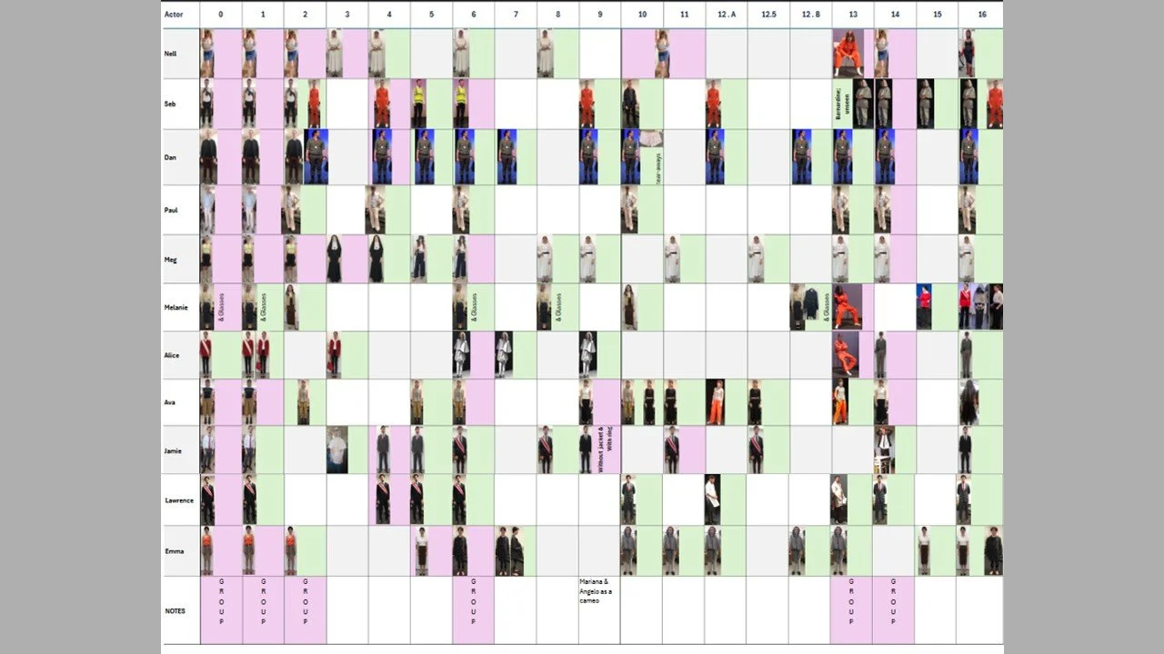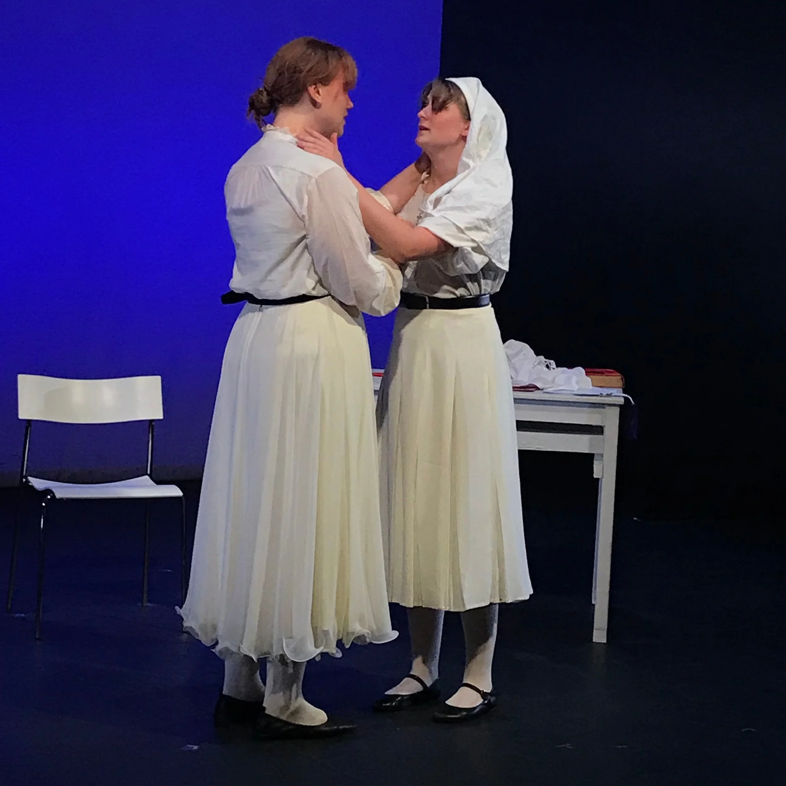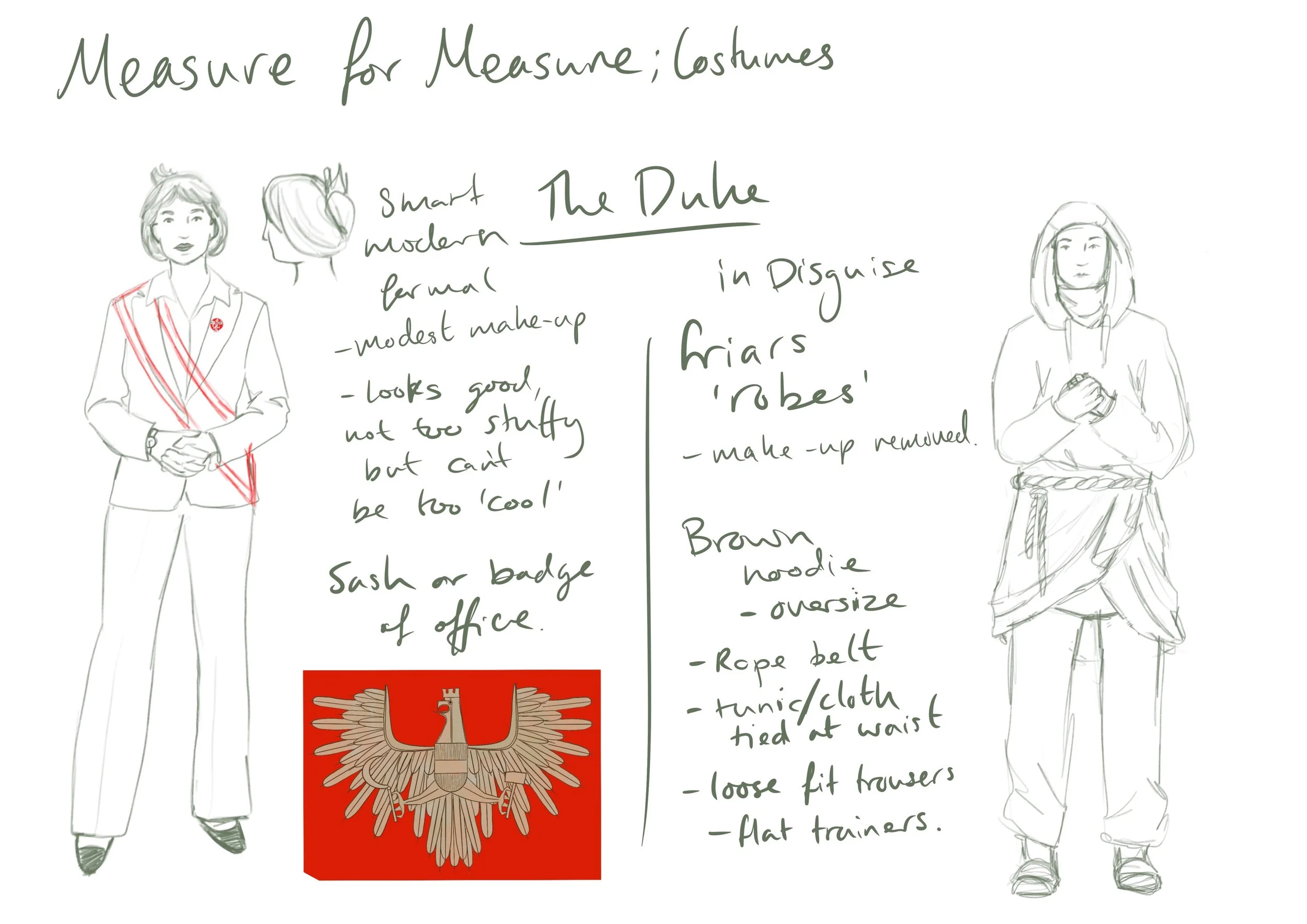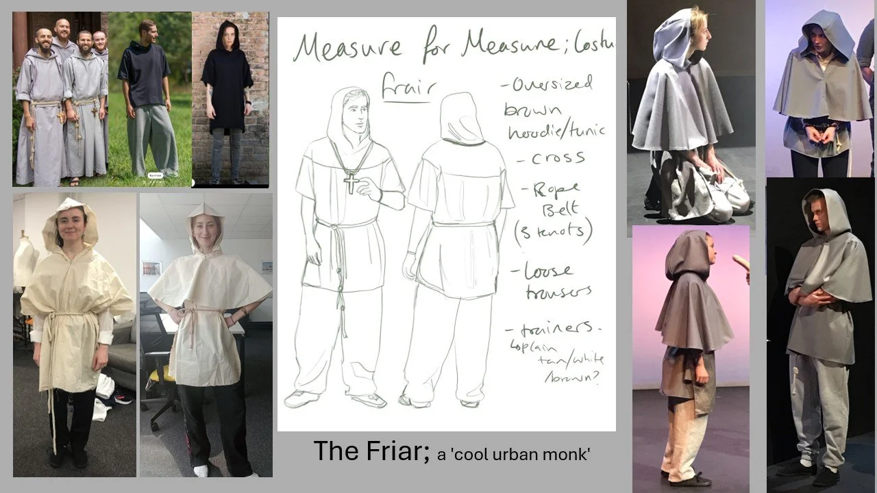 A 5-week process from receiving the script to opening night. I spent the first week in the rehearsal room designing as the actors did table work. All costumes were realised with help from one assistant and on a budget of £200.
